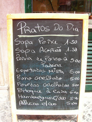 no dia seguinte durante um passeio em Vila Franca de Xira este cardápio aliciante para carnívoros: